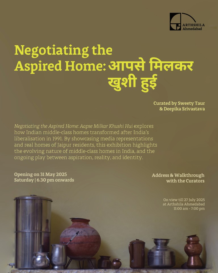 Negotiating the Aspired Home: Aapse Milkar Khushi Hui explores how Indian middle-class homes transformed after economic liberalisation. With the rise of the ‘new middle class’ and international consumerism post-1991, homes became contested spaces where aspiration met affordability, and global aesthetics clashed with local ingenuity. The shift from socialist frugality to media-driven consumerism altered incomes, consumption patterns, family structures, and domestic spaces.