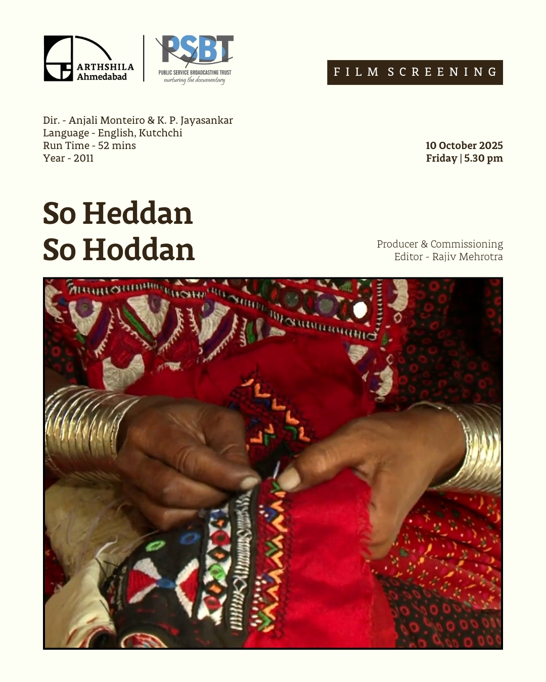 The screening is programmed by Arthshila Ahmedabad during Ahmedabad Cultural Week (3-12 October 2025).