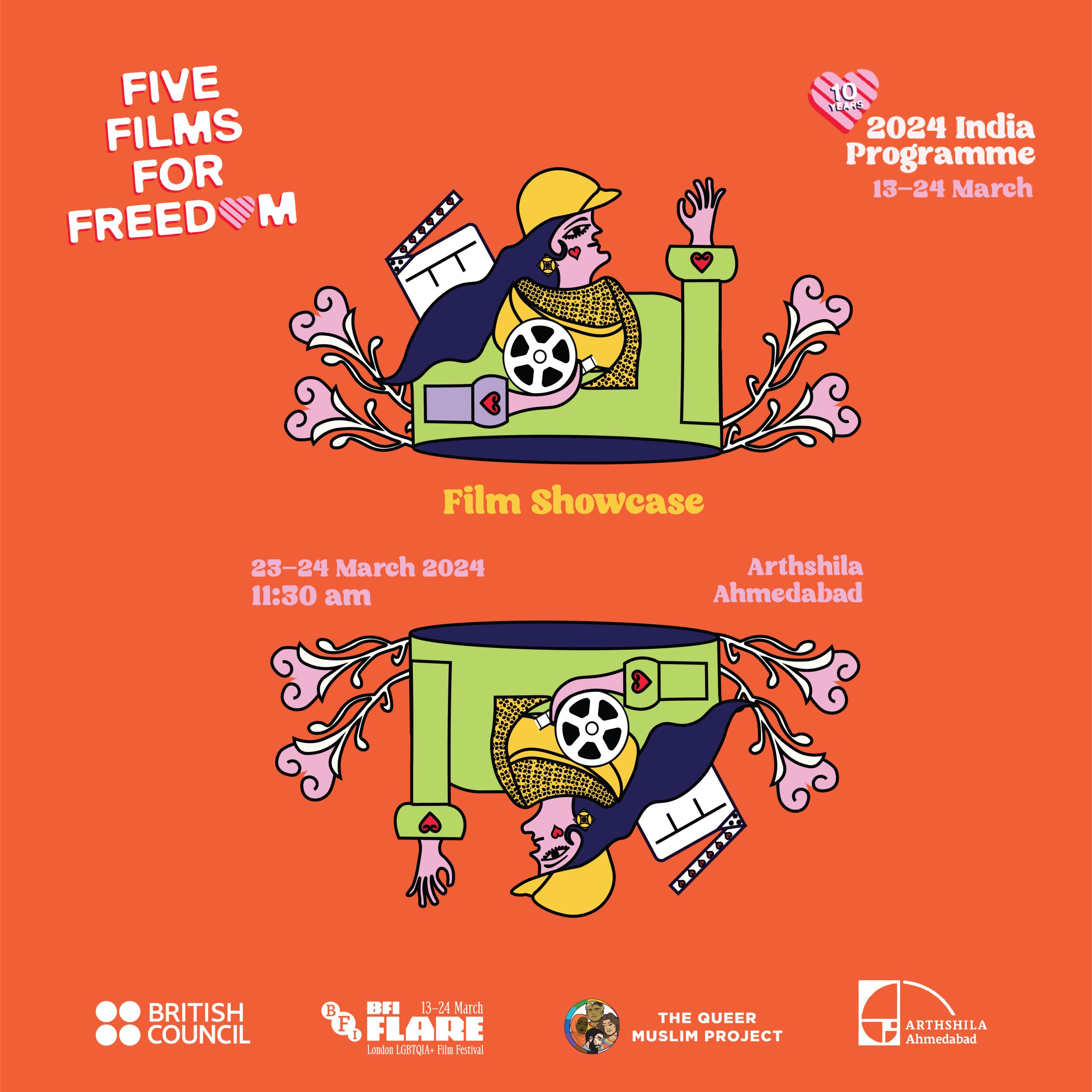 Arthshila Ahmedabad together with The Queer Muslim Project, invites you to the screening of FIVE Films for Freedom at Arthshila Ahmedabad on 23 – 24 March 2024 to celebrate the 10th year of #FiveFilmsForFreedom.