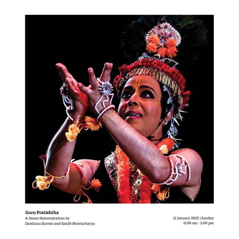 Join us for a dance demonstration, ‘Guru Pratishtha’, by Darshana Jhaveri and Sanjib Bhattacharya.This session is part of the ongoing exhibition Nayana Jhaveri: A Life in Lasya.