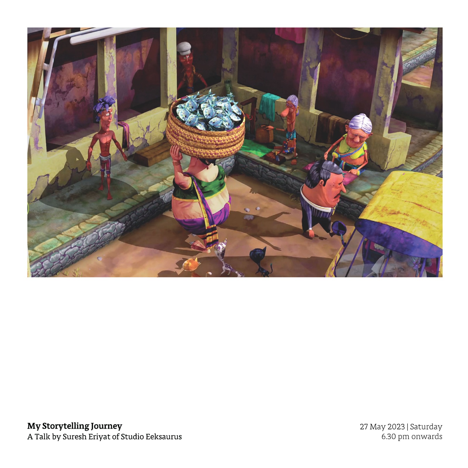 In this session, Suresh Eriyat will introduce his works in the fields of filmmaking, animation, advertising, and design to the audience through a talk, film screenings, and glimpses of behind-the-scenes.