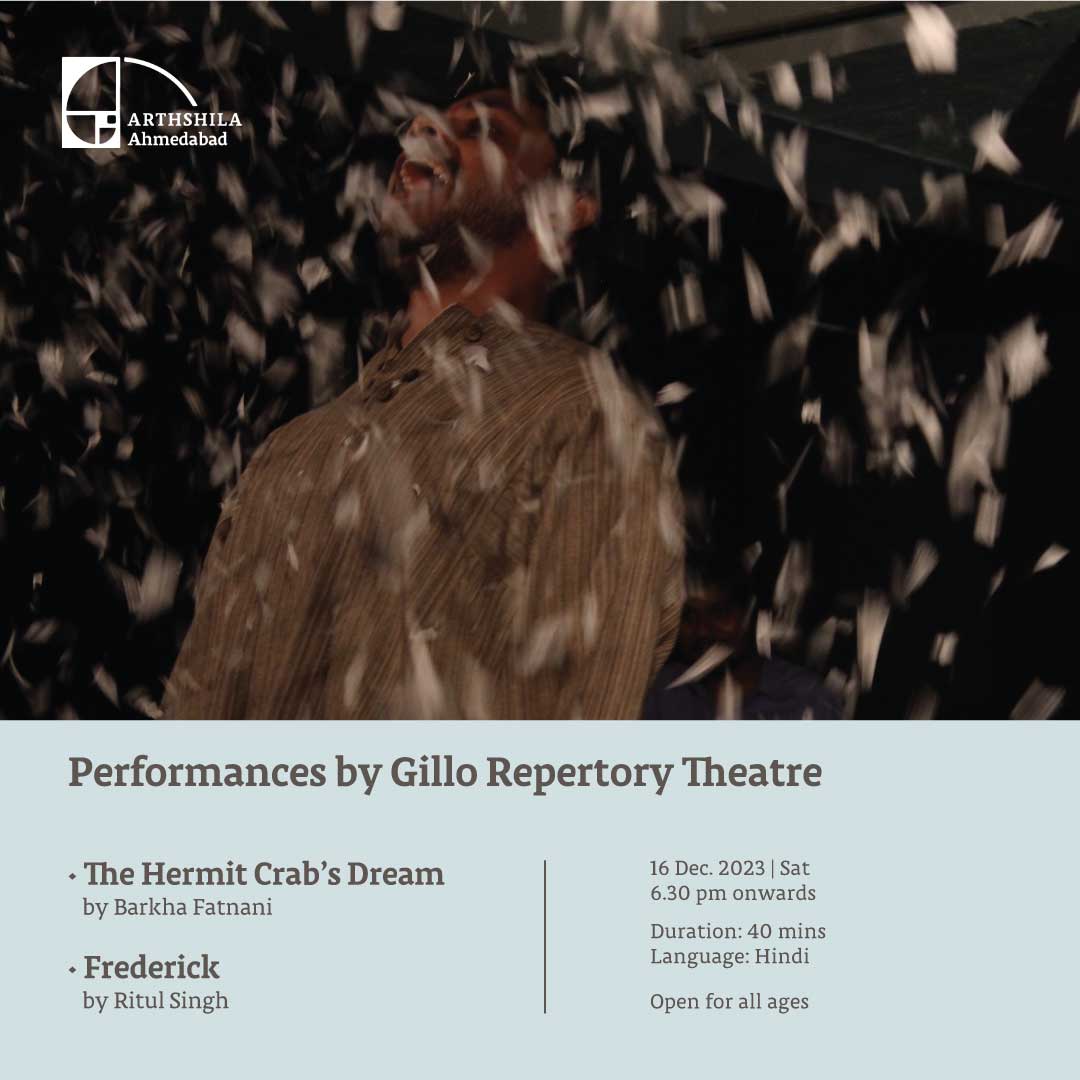 Join us at Arthshila Ahmedabad for Performances โ๐ง๐ต๐ฒ ๐๐ฒ๐ฟ๐บ๐ถ๐ ๐๐ฟ๐ฎ๐ฏโ๐ ๐๐ฟ๐ฒ๐ฎ๐บโ ๐ฏ๐ ๐๐ฎ๐ฟ๐ธ๐ต๐ฎ ๐๐ฎ๐๐ป๐ฎ๐ป๐ถ and โ๐๐ฟ๐ฒ๐ฑ๐ฒ๐ฟ๐ถ๐ฐ๐ธโ ๐ฏ๐ ๐ฅ๐ถ๐๐๐น ๐ฆ๐ถ๐ป๐ด๐ต ๐ผ๐ณ ๐๐ถ๐น๐น๐ผ ๐ฅ๐ฒ๐ฝ๐ฒ๐ฟ๐๐ผ๐ฟ๐ ๐ง๐ต๐ฒ๐ฎ๐๐ฟ๐ฒ.