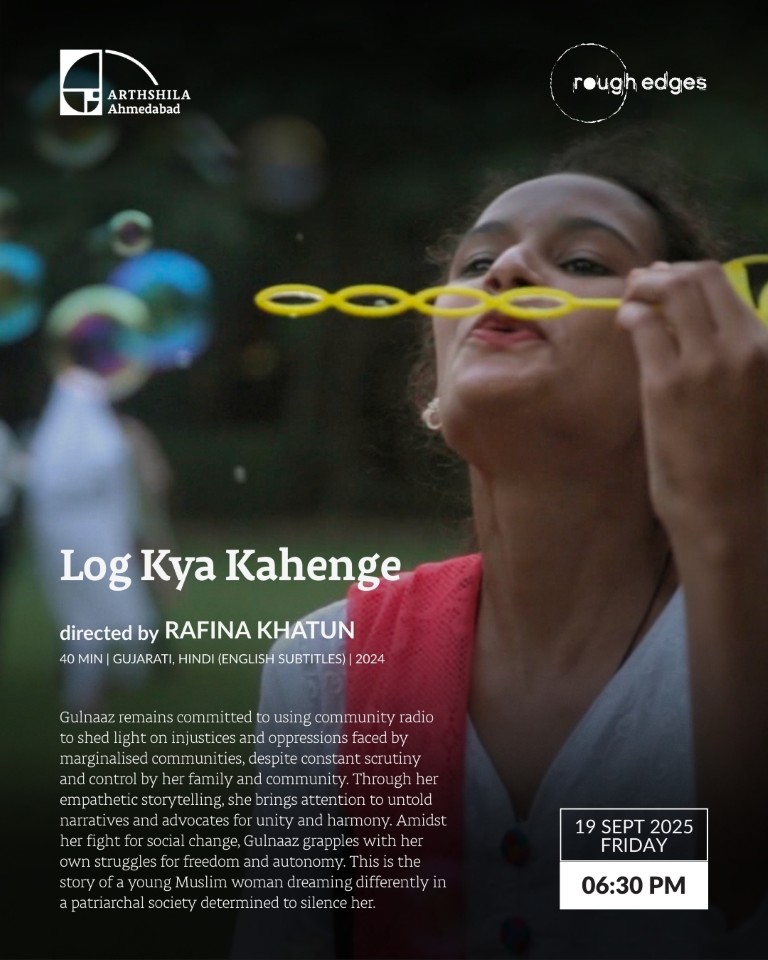 Join us at Arthshila Ahmedabad for the film screenings of ‘Umbro’ by Prachee Bajania and ‘Log Kya Kahenge’ by Rafina Khatun, followed by Interactions with the Filmmakers in collaboration with Rough Edges as a part of Imprints Travelling Programme.