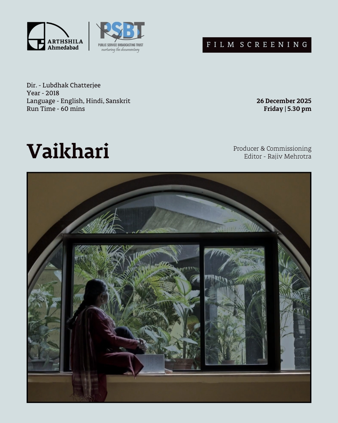 Arthshila Ahmedabad’s Film Screening this week features ‘Vaikhari’ by Lubdhak Chatterjee, in collaboration with Public Service Broadcasting Trust.
