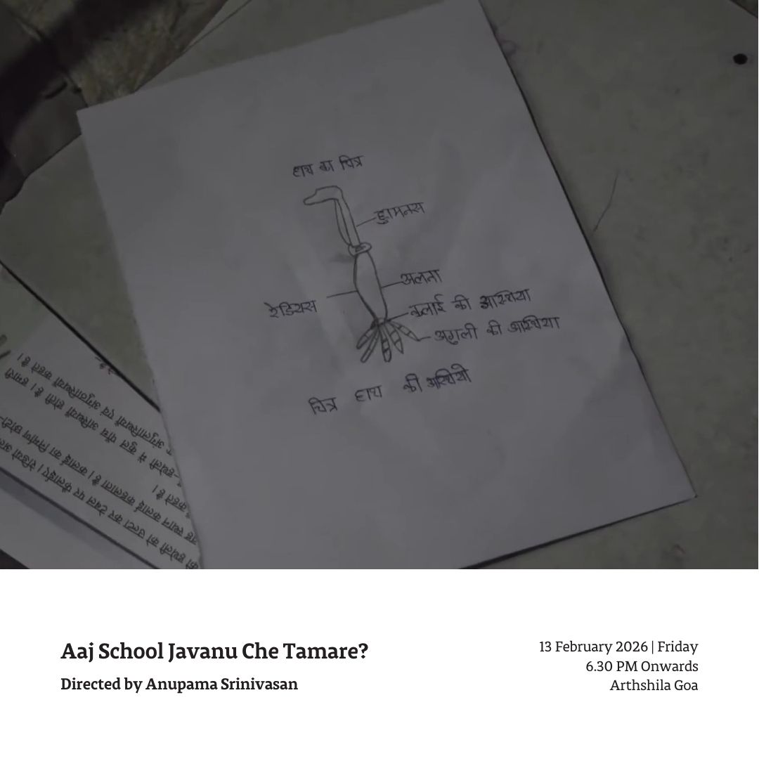 Join us for the screening of Aaj School Javanu Che Tamare? by Anupama Srinivasan, presented in collaboration with PSBT at Arthshila Goa.