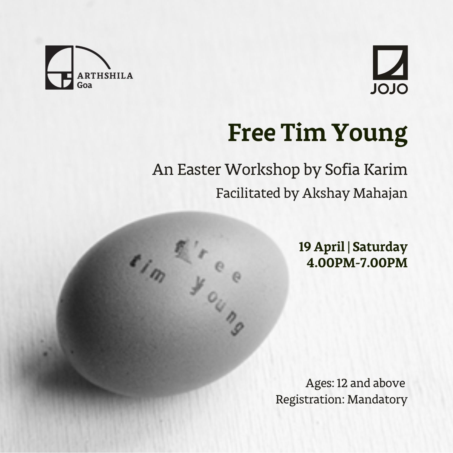 We are delighted to announce Free Tim Young, an easter workshop by Sofia Karim, facilitated by Akshay Mahajan.