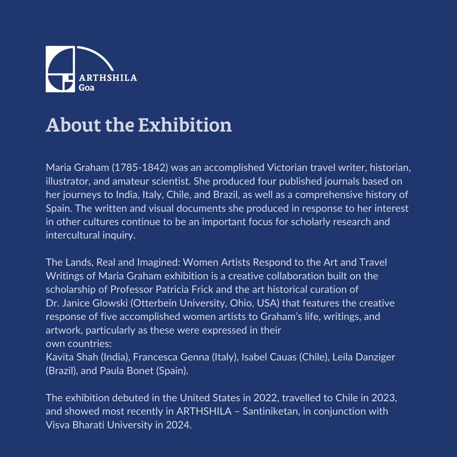 The exhibition is curated by Dr. Patricia Frick and Dr. Janice Glowski and features artistic responses by Kavita Shah, Francesca Genna, Isabel Cauas, Leila Danziger, and Paula Bonet, who reinterpret Graham’s life and work through their diverse cultural and artistic lenses.