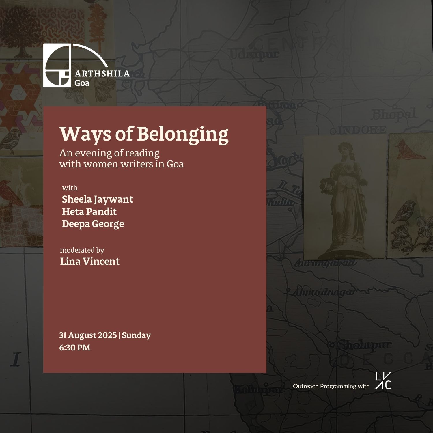 Join us for Ways of Belonging; an evening of reading with women writers in Goa, with Sheela Jaywant, Heta Pandit and Deepa George, moderated by Lina Vincent, at Arthshila Goa.