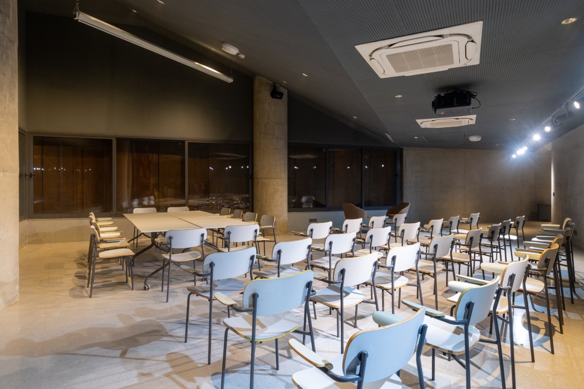 The amphitheater, located on the ground floor, is designed to host a variety of activities including talks, discussions, intimate events, film screenings, and occasional performances. It also serves as a welcoming informal meeting space for our community.